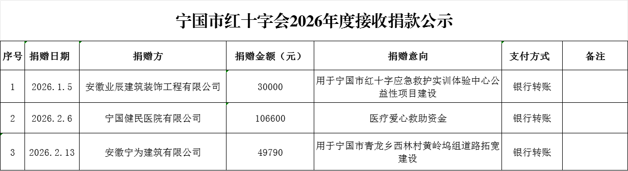 宁国市红十字会2026年度接收捐款公示